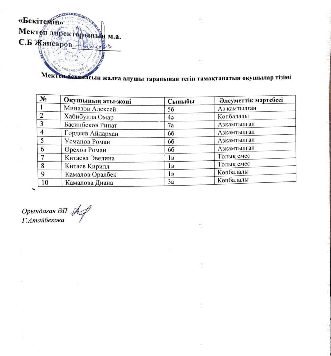 » » Жалға алушы есебінен тегін ыстық тамақпен қамтылған оқушылар тізімі