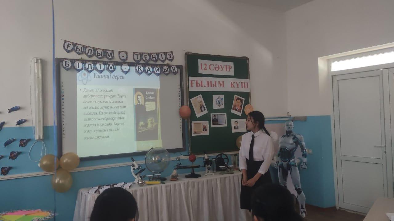 12 сәуір ғылым күніне арналған мектепте "Ғылым- теңіз, білім - қайық" тақырыбында апталықтың ашылуы өтті. Ашылу барысында түрлі іс- тәжірибе мен викториналық сұрақтар болды. Оқушылар белсене қатысты