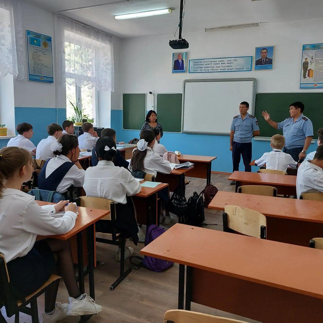 Іле ауданы ЖПБ аға инспекторы Д.Турлыбеков пен А.Шарипханов оқушылармен құқықбұзушылықтың алдын алу бойынша дәрістер,қауіпсіздік ережелерін ескертті. » Іле аудандық мектебі