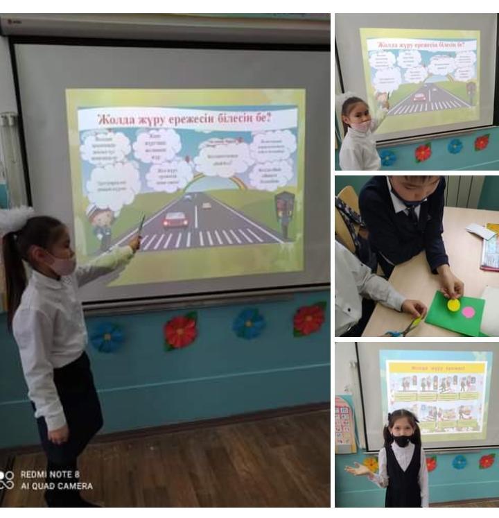 №21 орта мектеп бойынша 1-4 сыныптар аралығында «Жол тәртібін білейік, аман-есен жүрейік!» , «Абайлаңыз, балақай!» , «Жолда жүре білеміз бе?» тақырыптарында сынып сағаттары мен әңгімелер өткізіп, жол ережелері туралы тағы да ескертіп кетті.