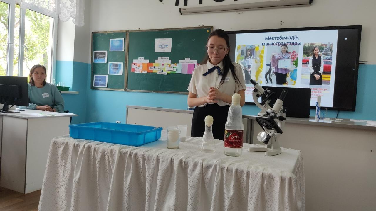 № 21 орта мектебі » Біз туралы » Әдістемелік жұмыстар » 14.04.2022 ж "Ғылым күні" апталығы барысында болашақ жас ғалымдармен кездесу ұйымдастырылды. Кездесу барысында болашақ ғалымдар өздерінің тәжірбиелерін көрсетті