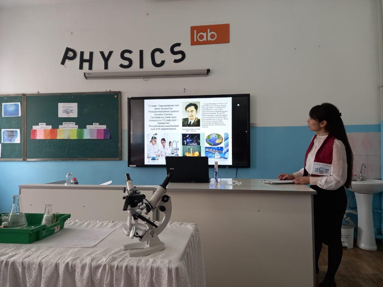 14.04.2022 ж "Ғылым күні" апталығы барысында болашақ жас ғалымдармен кездесу ұйымдастырылды. Кездесу барысында болашақ ғалымдар өздерінің тәжірбиелерін көрсетті