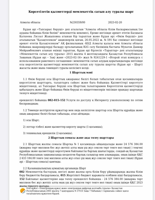 Интернет бойынша келісімшарт Договор предоставления интернета