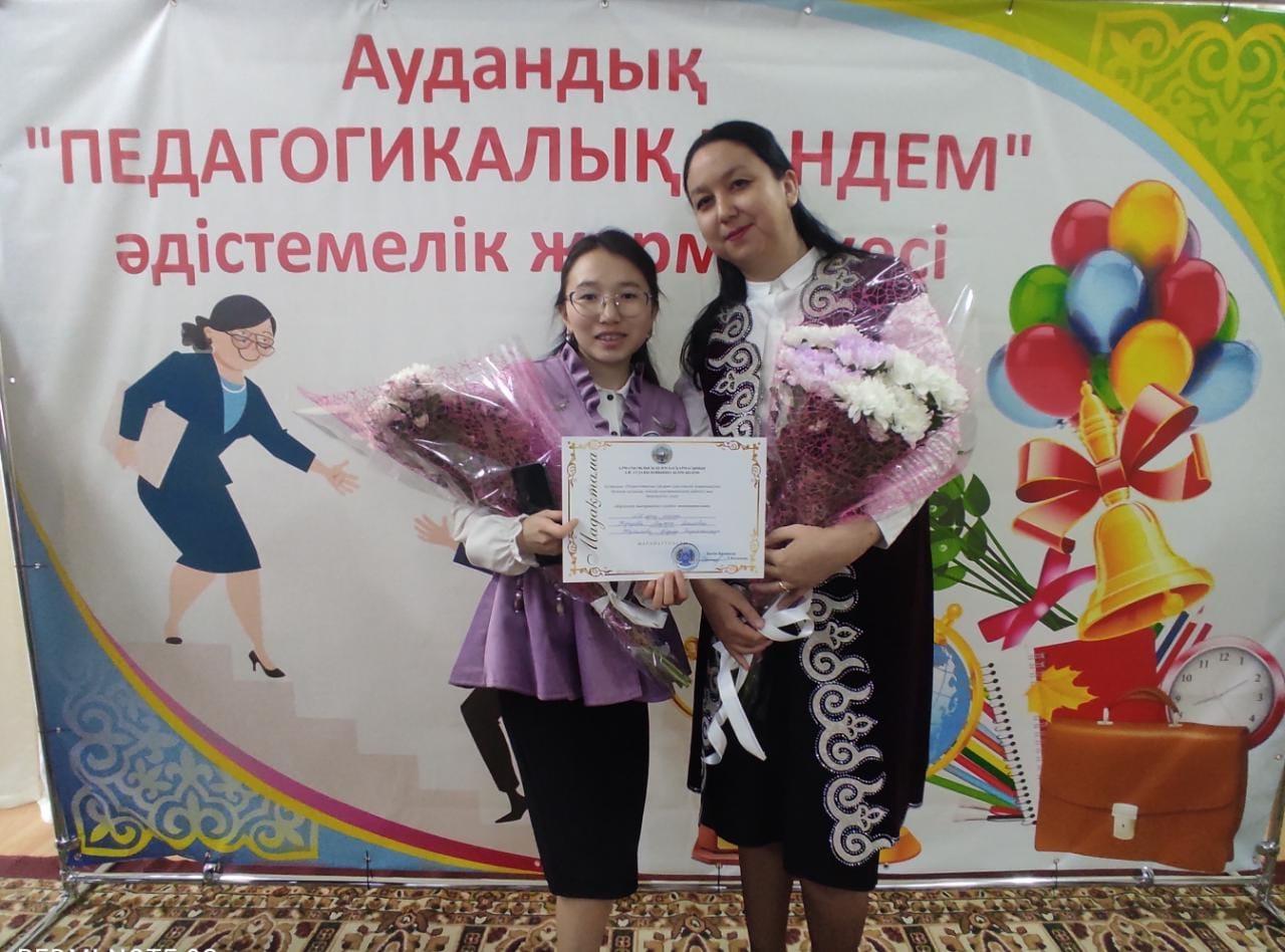 Аудандық "Педагогикалық тандем" әдістемелік жәрмеңкесінің "Бірлескен шығармашыл ізденіс" номинация иегерлері М. Жунусова мен А. Жұмашева » Іле аудандық мектебі